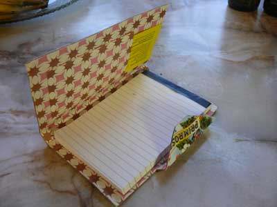 Fönstret på framsidan där adresslappen satt borde kunna användas. Jag skar ut baksidan men sparade en ”del”…